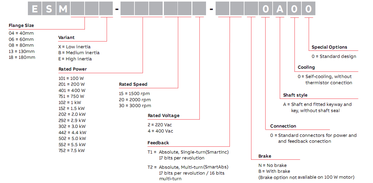 ESM系列伺服電機(jī)用于高動態(tài)精度的運動控制由于其轉(zhuǎn)矩密度高,ESM系列伺服電機(jī)具有高動態(tài)響應(yīng)。單圈和多圈高分辨率值編碼器反饋可選件可匹配應(yīng)用要求。ESM系列電機(jī)外殼符合IP65防護(hù)等級。額定功率從0.1kW至7.5kW,五個標(biāo)準(zhǔn)的框架法蘭尺寸為40,60,80,130和180毫米,可添加制動可選件??蚣?0-80法蘭的電機(jī)提供引出線,方便電機(jī)動力和反饋的連接。